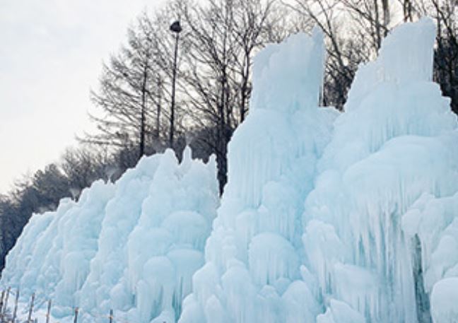 커다란 얼음분수와 멋진 눈과 얼음조각을 감상할 수 있고, 깡통 열차와 짚트랙, 빙어낚시 등 다양한 체험 프로그램이 있습니다.