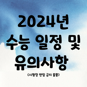 2024년도 대학수학능력시험이 코 앞으로 다가왔습니다. 수험생 여러분들은 오랜 시간에 걸쳐 준비해왔던 소중한 시간이 헛되지 않도록 수능 일정과 유의사항을 꼭 숙지하시고 시험에 응하셔야겠습니다.