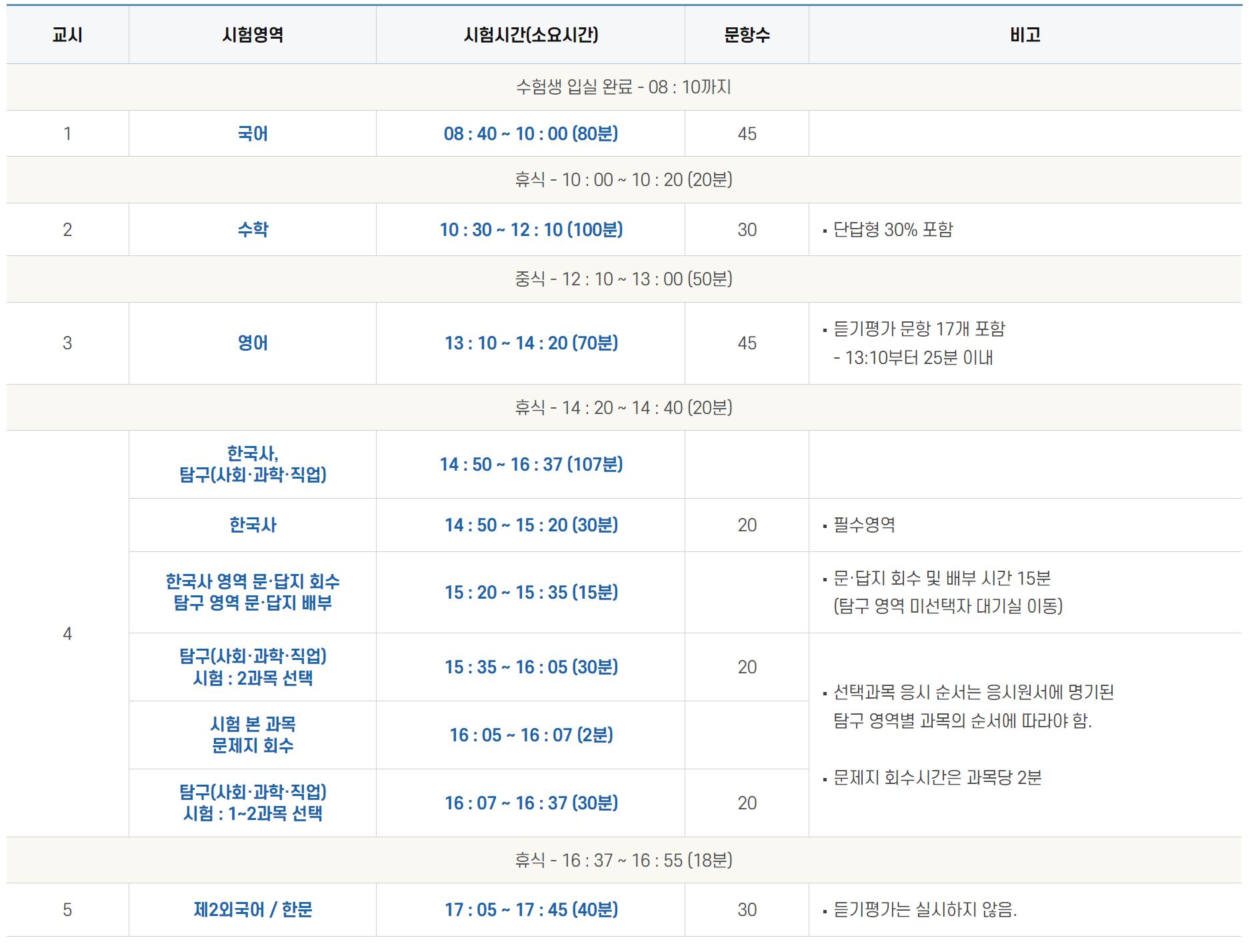 - 기타 시험에 관한 사항은 각 시도교육청, 시험지구 교육청 또는 한국교육과정평가원으로 문의하실 수 있습니다.